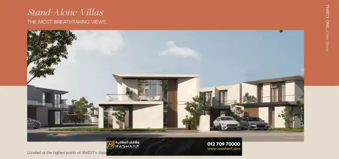 Townhouse for sale in 31 West 6 October The design of 31 West 6 October compound shines with an innovative architectural vision that blends creativity with practical functions. The residential buildings in this compound are distinguished by their architectural beauty that seamlessly blends with the picturesque artificial lake that extends over an area of 7,000 square meters, creating an atmosphere of calm and relaxation. The compound contains 558 diverse residential units.