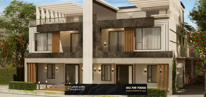 available Twin House for sale in Giselle Compound , with the finest designs, in a privileged geographical location near all the important vital areas, in addition to its elegant urban design that meets all the needs of the residents who are looking for a sophisticated and quiet place to live away from the noise of the city.